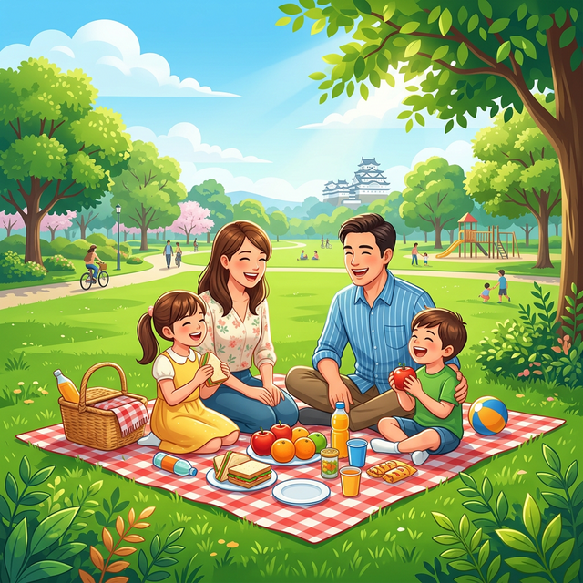 2. 広大な芝生広場でピクニック