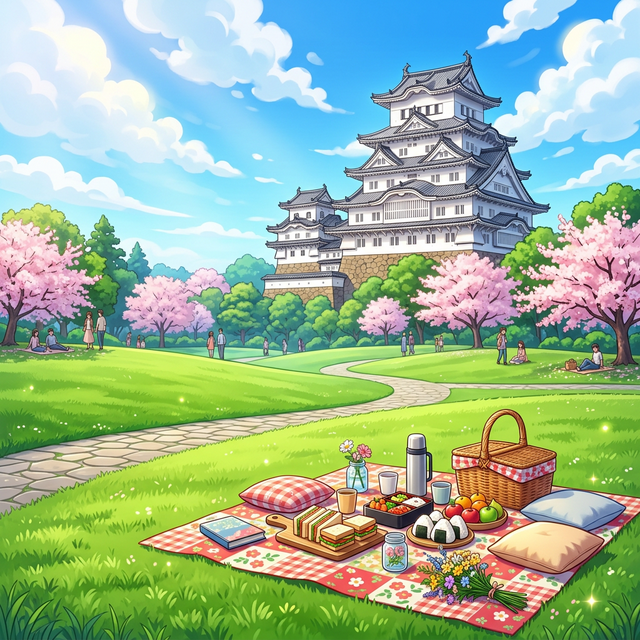 お弁当を持参して、レジャーシートを敷けば立派なピクニック会場に。世界遺産・姫路城を目前に見上げながらのランチは他では味わえない贅沢な時間です。